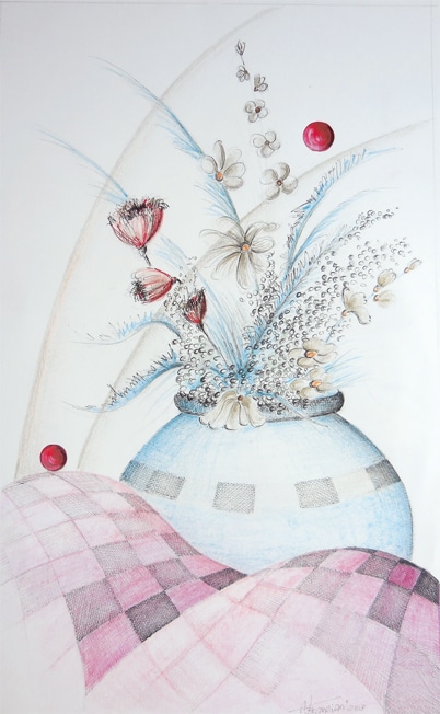È una pittura, frutto di stati d’animo e di sensazioni, a volte sfumate, a volte più fortemente marcate, ma sempre avvolta in una atmosfera irreale, come un ricordo di cose viste o sognate, rese con un sottile grafismo che scompone e ricompone liberamente le immagini nei loro elementi essenziali, sintetizzati e scarniti. Il colore sempre armoniosamente dosato è l’aerea atmosfera in cui vivono le sue composizioni.